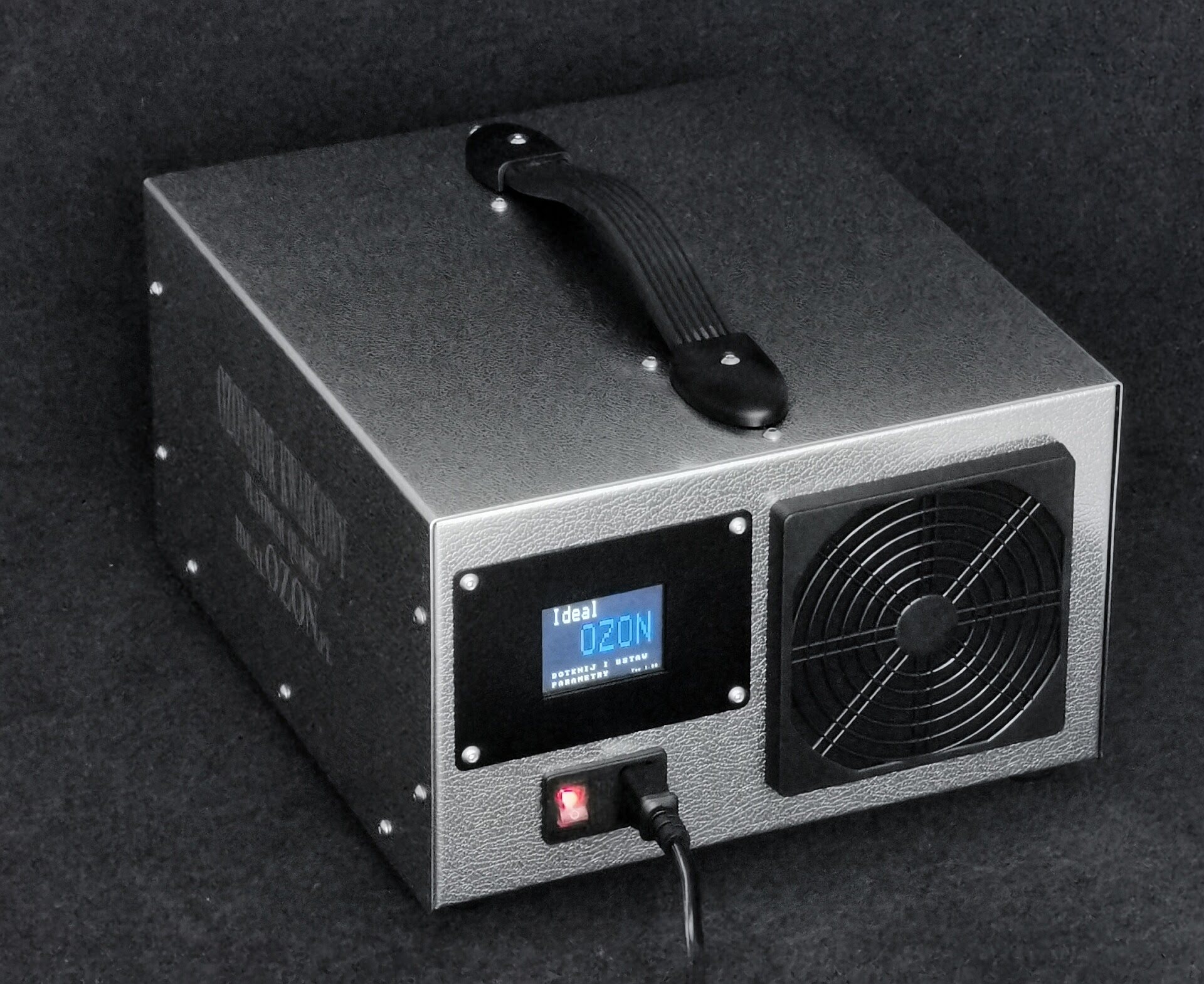 Ozonator przedmuchowy / generator ozonu z wbudowym wentylatorem lub wentylatorami do ozonowania różnych przestrzeni i placówek.